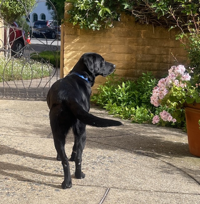 Duke is an easy going guy who loves attention and has a very sweet heart. He was surrendered to MBLRR because his owners are moving out of the country and can’t take him. Duke has been an outside dog all his life, but he’s proven to be extremely well mannered in his foster home. He’s housebroken, doesn’t counter surf, doesn’t touch anything he’s not supposed to touch, loves the couch and adores being with his people. Duke knows basic commands and comes when called. He does pull on a leash. He’s good with other dogs and has been lovely with the foster’s female lab. He gave her a kiss the minute he met her and has been sweet and respectful with her. We’re told he pays no attention to cats, tho we haven’t had the chance to test that out. Duke is not a barker, a chewer or a digger. But he is a sloppy drinker. He adores car rides and rides well. He loves to be in the water. Just a typical, sweet labby boy! He so wants to please and loves to snuggle with his people. Duke would be fine with another dog or as an only dog. He’s great with kids and can be around any age children. As always, we want Duke to go to a home where someone is around most of the time. He’s very healthy and in great shape. Duke is a loving, friendly, happy guy and he deserves a great family.